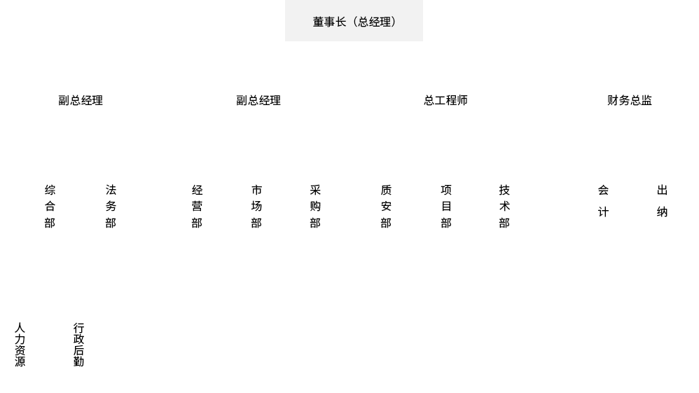 公司由一支強有力的領(lǐng)導(dǎo)班子帶領(lǐng)公司員工組成一個團結(jié)的戰(zhàn)斗團體,下設(shè)工程安檢部、工程管理部、經(jīng)營開發(fā)部、勞動人事部、財務(wù)部、法務(wù)部、宣傳部以及辦公室等部門,負責公司的總體規(guī)劃及運營。通過對公司員工的技術(shù)教育和知識考核,強化公司上至領(lǐng)導(dǎo)下到員工的質(zhì)量生存認識。為嚴格公司紀律,明確責任,提高工作效率,引進了當前先進的管理體制,完善了各項規(guī)章制度,把責任明確到公司的每一位員工身上,出現(xiàn)問題能夠及時解決,把質(zhì)量安全事故消滅萌芽。